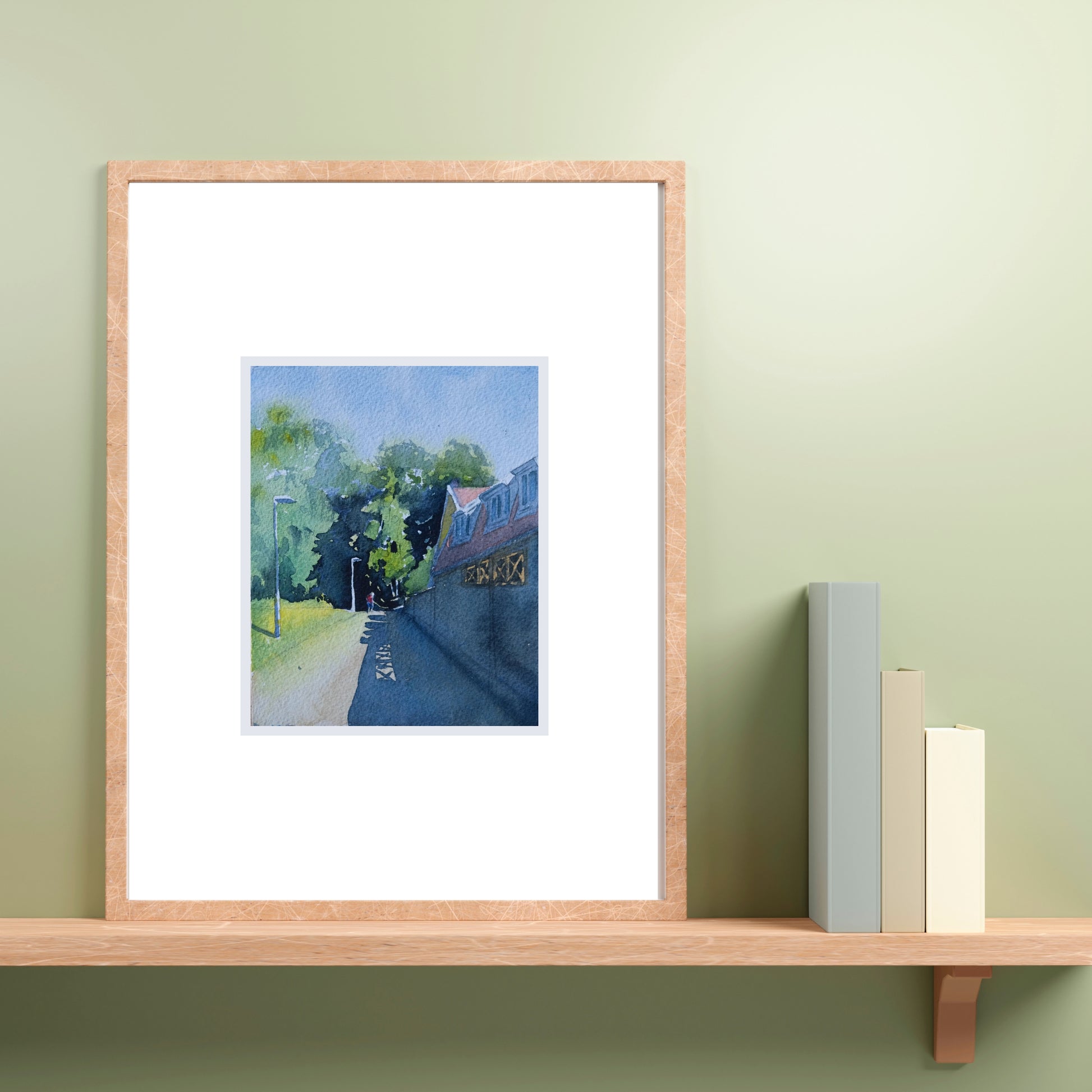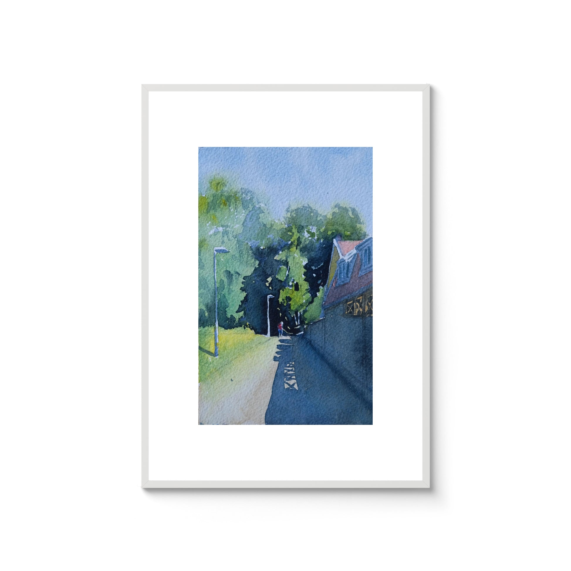 Originalmålningen mäter 15 × 20 cm och levereras som standard i en syrafri passepartout med yttermått 20 × 25 cm. Väljer du till ram levereras verket färdiginramat med Artglass, ett reflexfritt och UV-skyddande glas som hjälper till att bevara färgerna över tid.