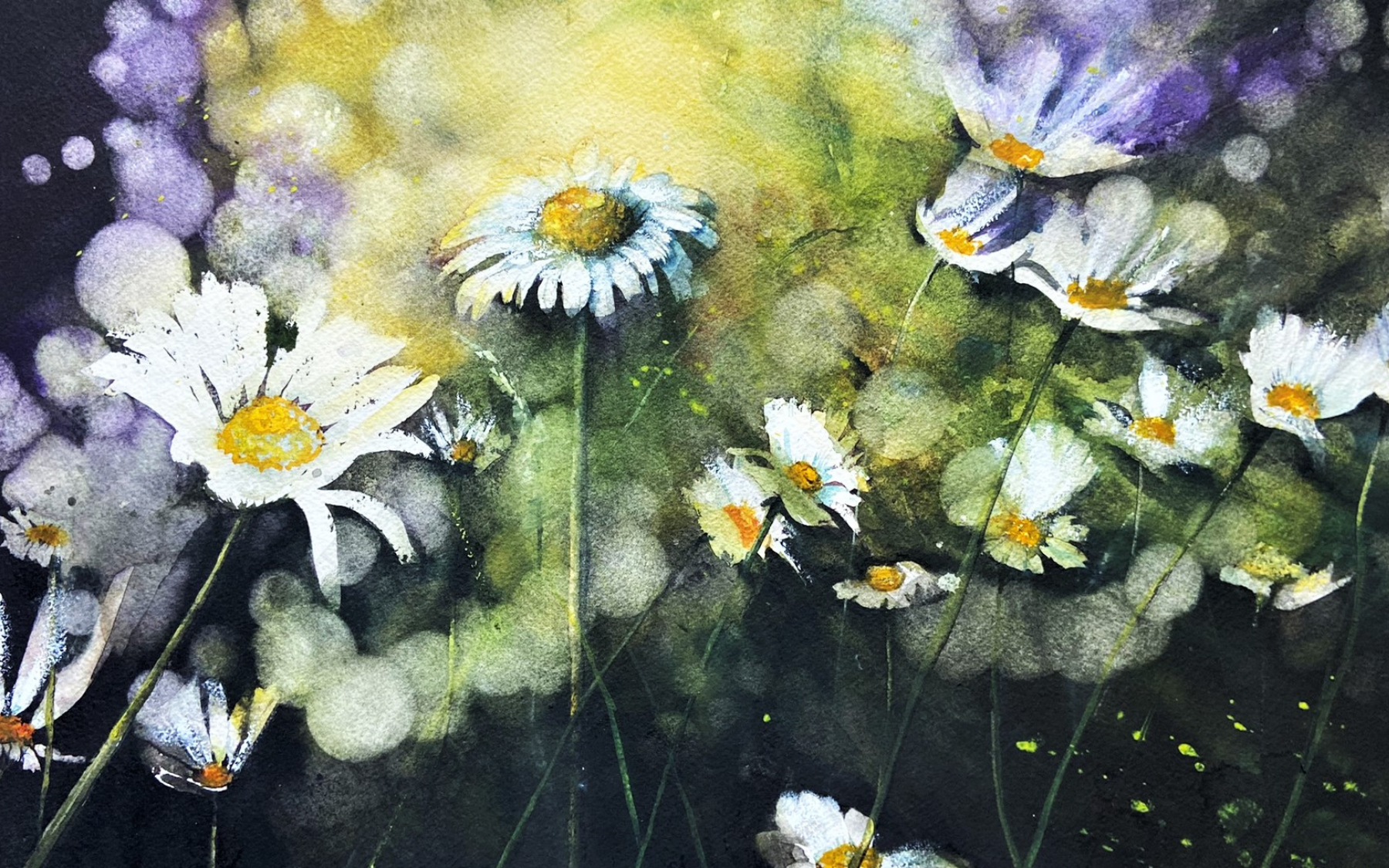 Den här akvarellmålningen målade jag när jag behövde få ser färger! Ljust och mörkt, gulgrönt och lila - energi!