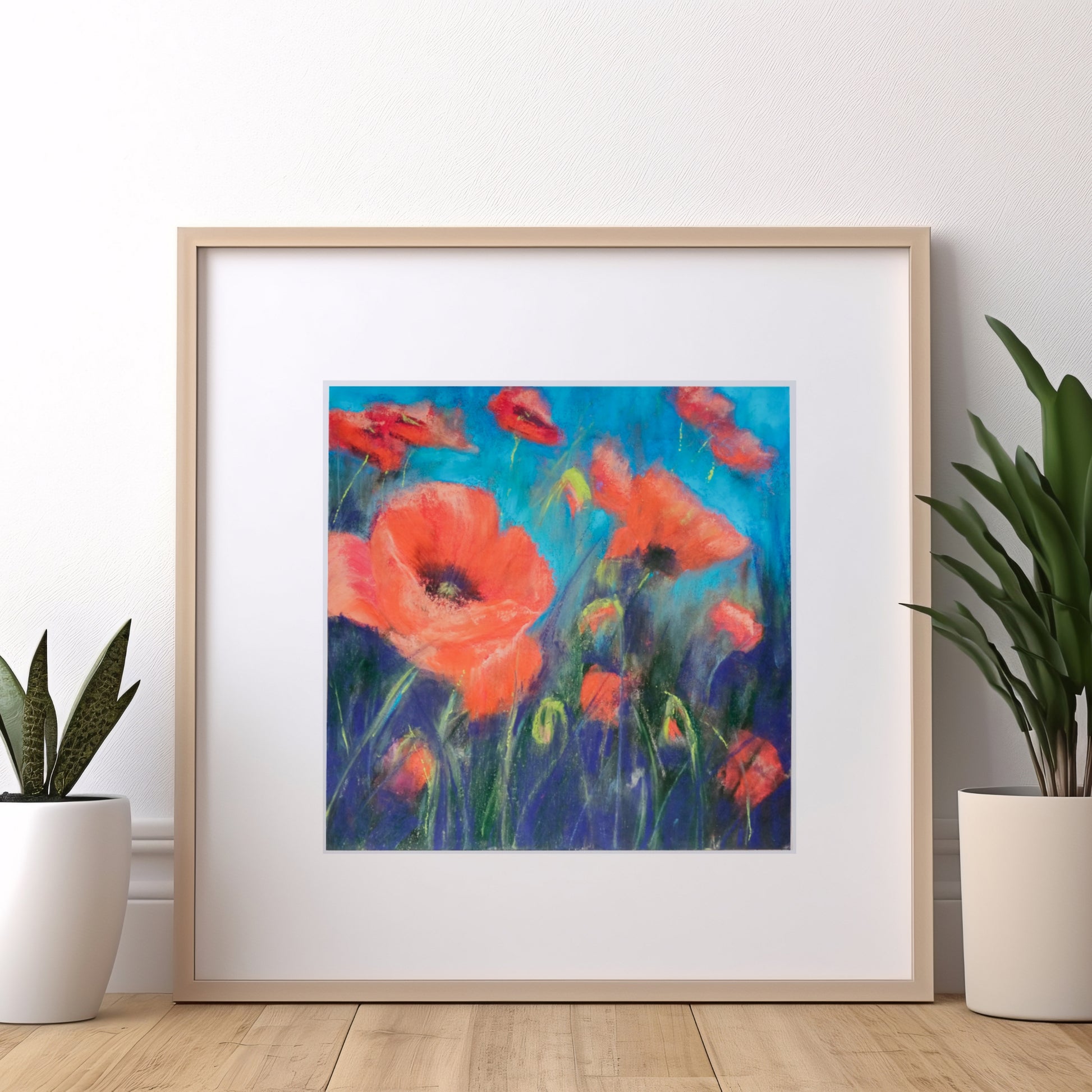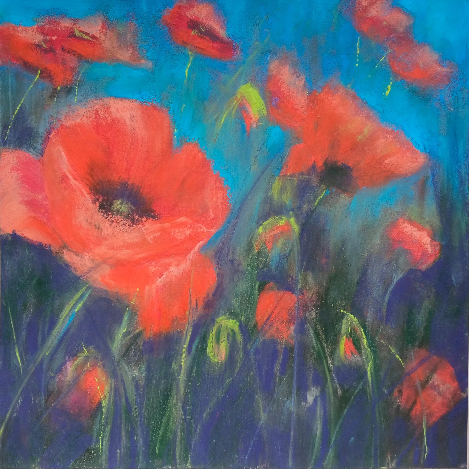 Jag återvänder ofta till vallmo i mitt måleri. Deras färg och form fascinerar mig. Bladen är så ömtåligt tunna, i kontrast till blommans mitt. På vår gård växer massor av vallmo varje sommar - en ständig källa till inspiration.