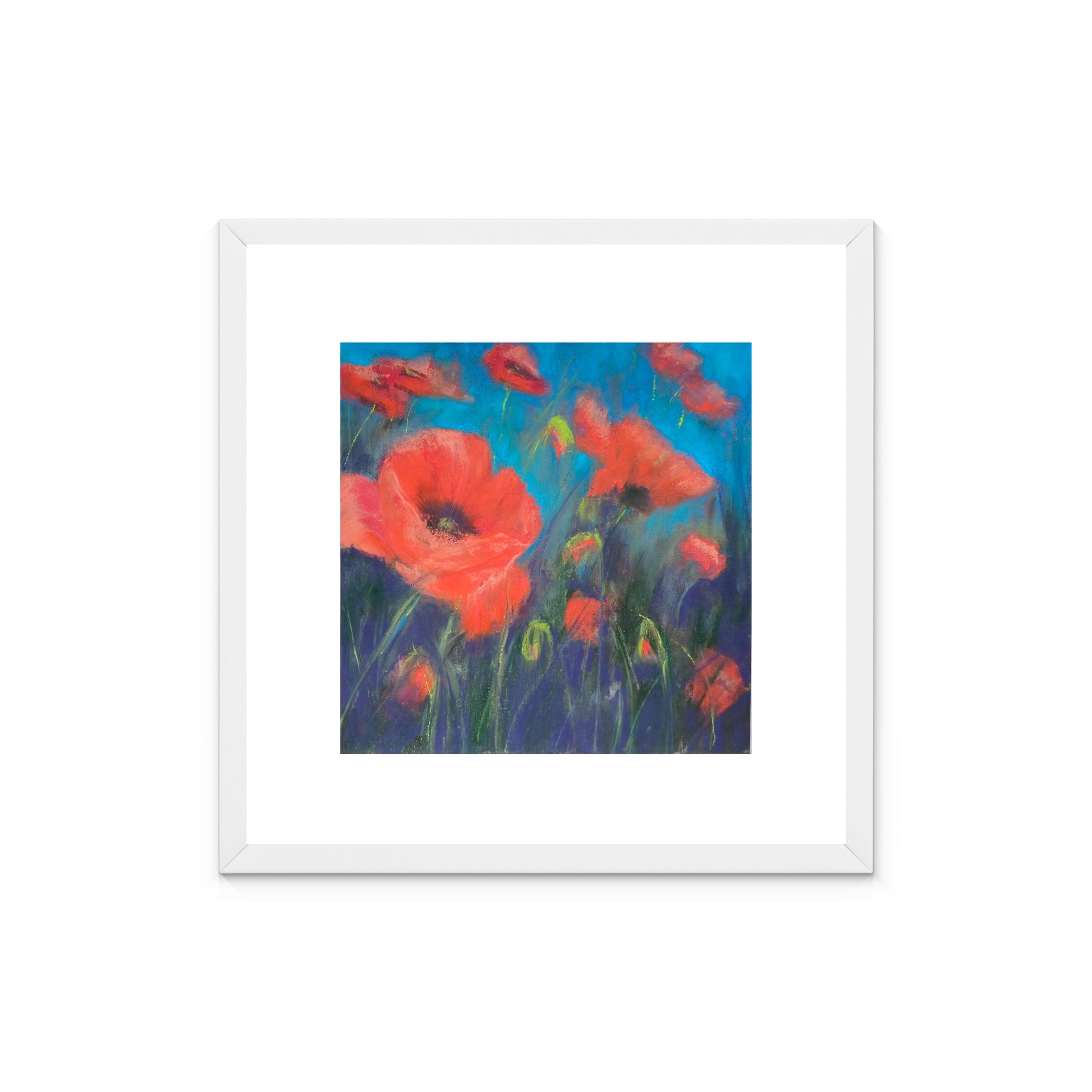 Originalmålningen mäter 24 × 24 cm och levereras som standard i en syrafri passepartout med yttermått 35 × 35 cm. Väljer du till ram levereras verket färdiginramat med Artglass, ett reflexfritt och UV-skyddande glas som hjälper till att bevara färgerna över tid.